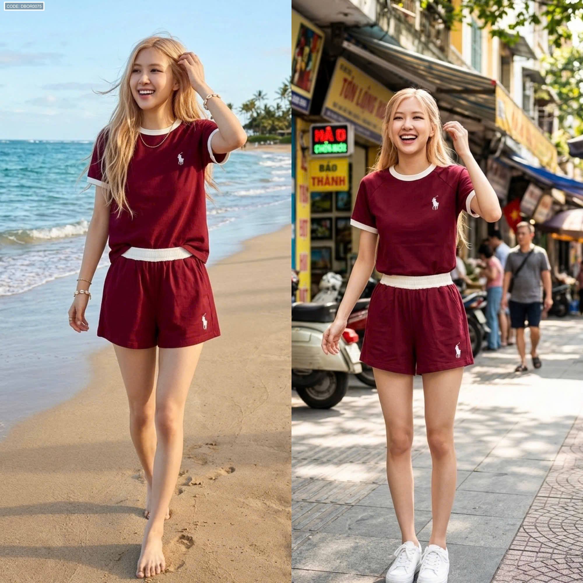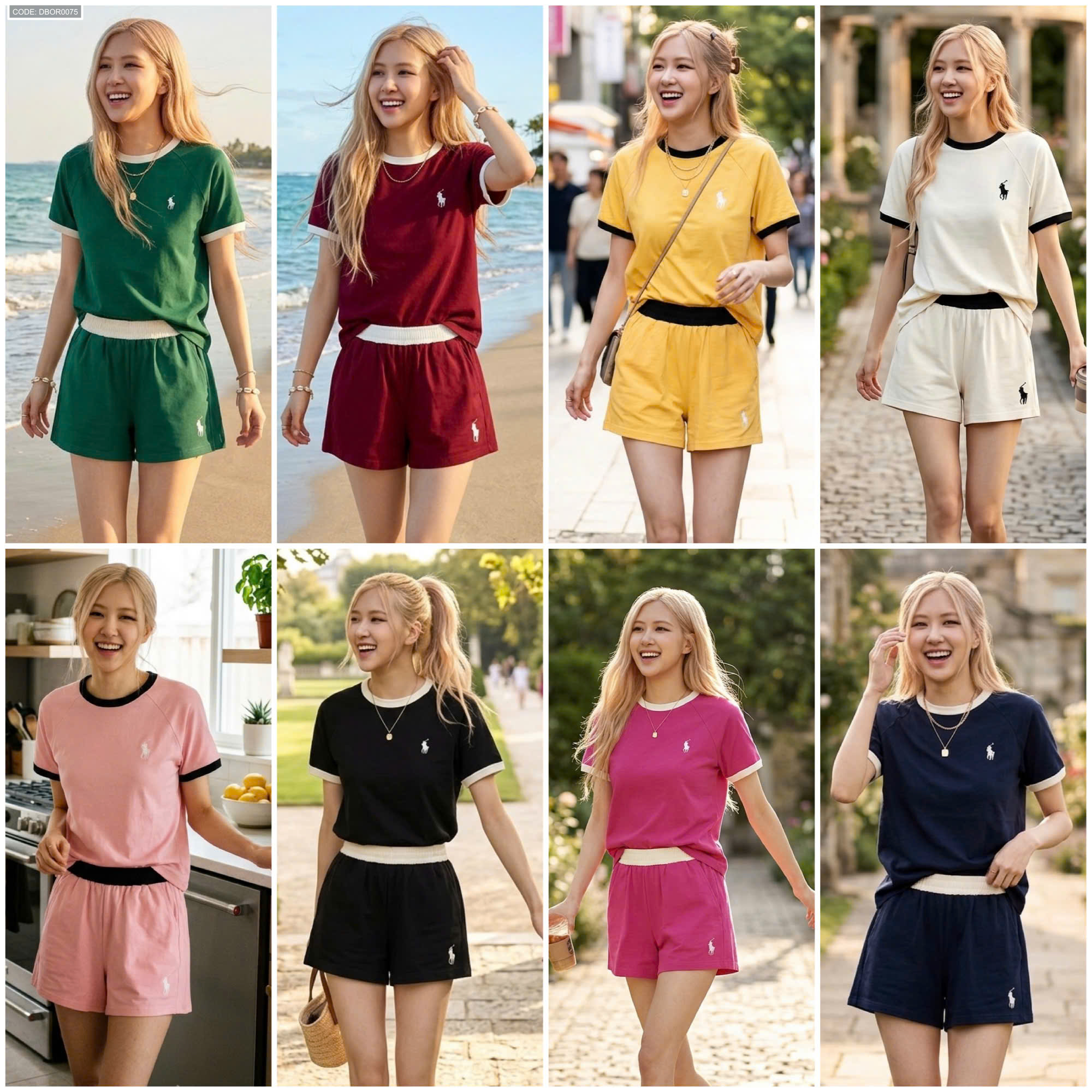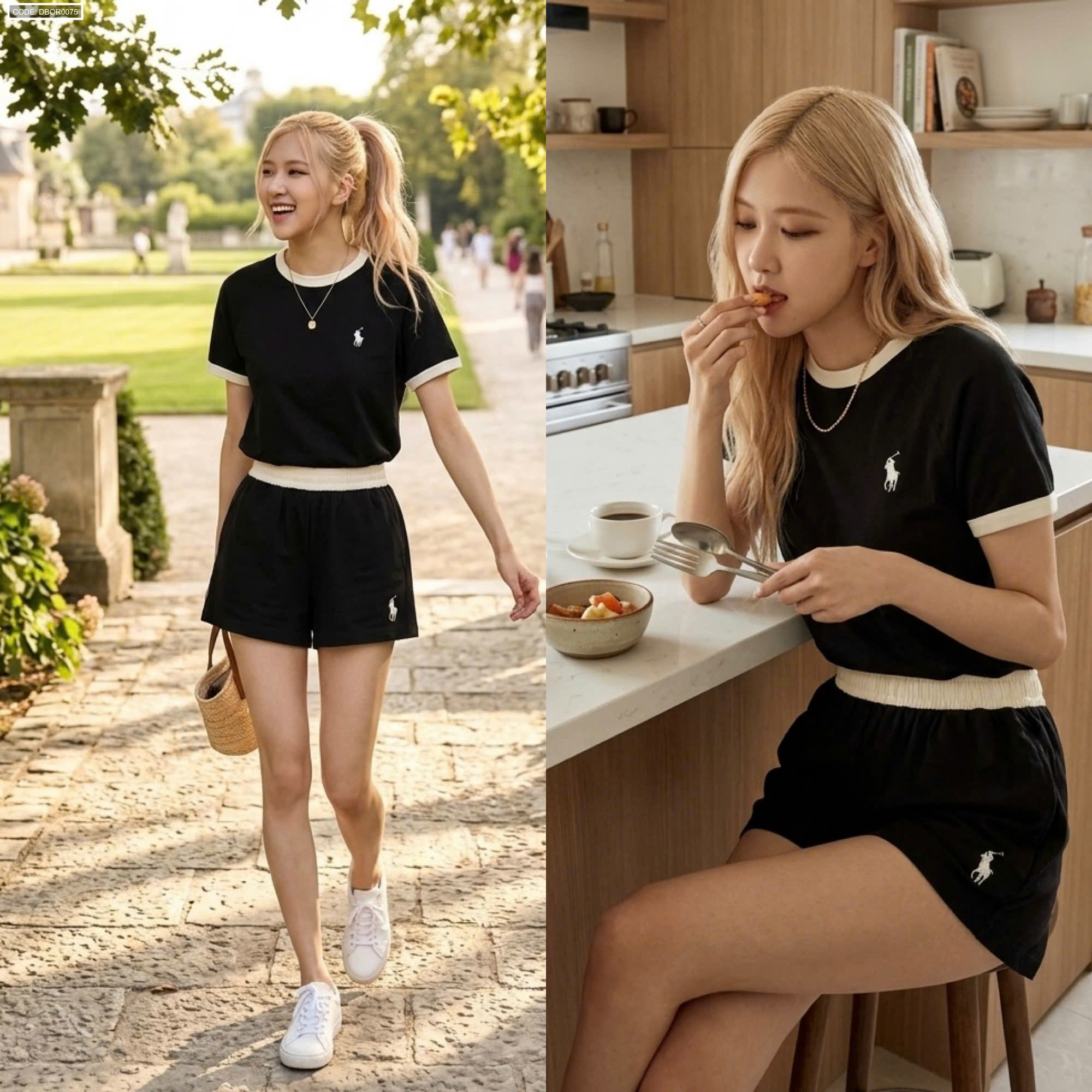 Shop sỉ đồ bộ nữ thể thao quần đùi thêu ngựa