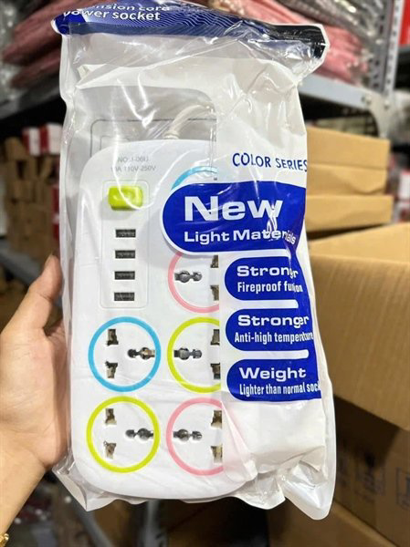 Trang bị 6 ổ cắm đa năng, phù hợp cho mọi loại phích cắm – dùng cho nhà ở, văn phòng, quán, cửa hàng đều tiện.