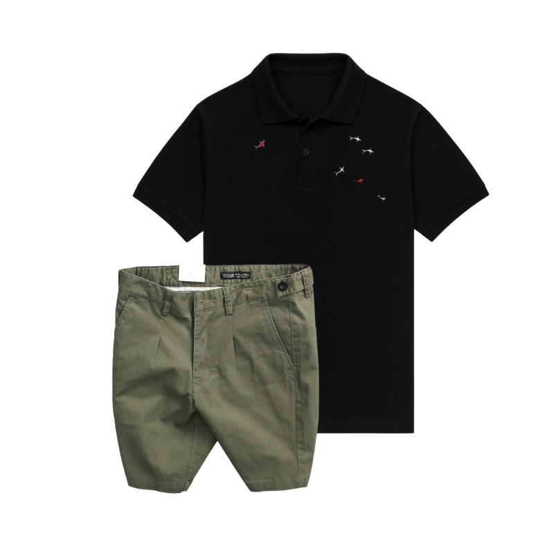 Shop sỉ set Bộ Nam – Áo Thun Nam Polo Cổ Bẻ Thêu Cá Mập Trước Ngực Và Quần Short Kaki Co Giãn Phối Nút Cao Cấp (Có Size 36)