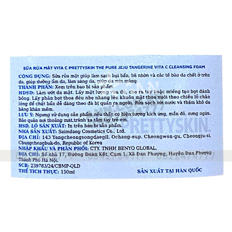 Sữa Rửa Mặt Prettyskin The Pure Jeju Tangerine Vita C Cleansing Foam 150ml
