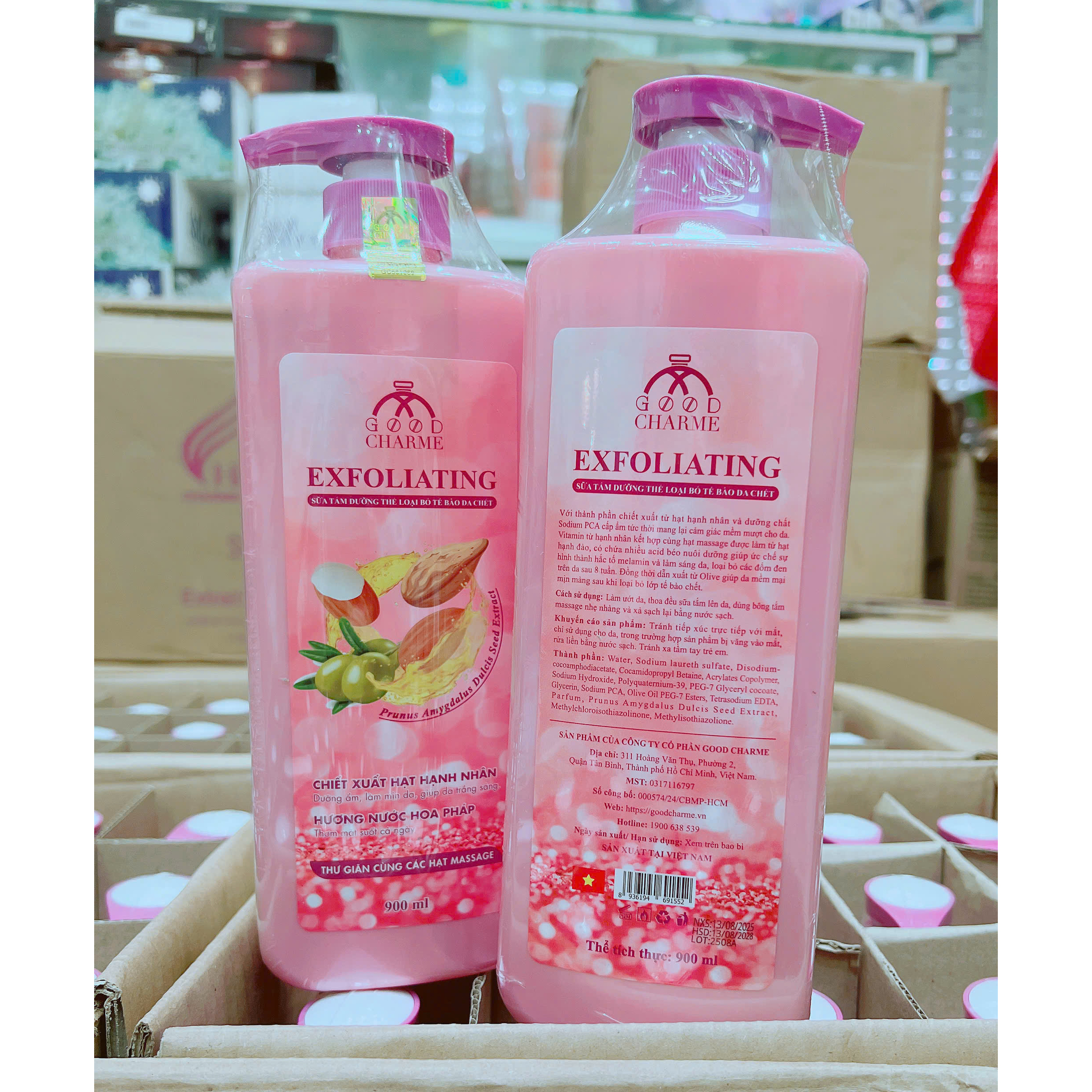 Sữa Tắm Cho Nữ Tẩy Tế Bào Da Chết Charme Exfoliating Hạt Hạnh Nhân Hương Nước Hoa Pháp 900ml