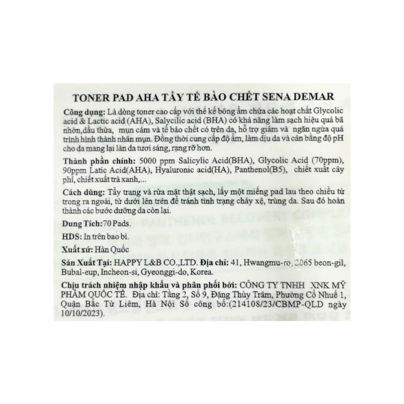 Toner Pad Aha Tẩy Tế Bào Chết Sena Demar Chính Hãng 150ml