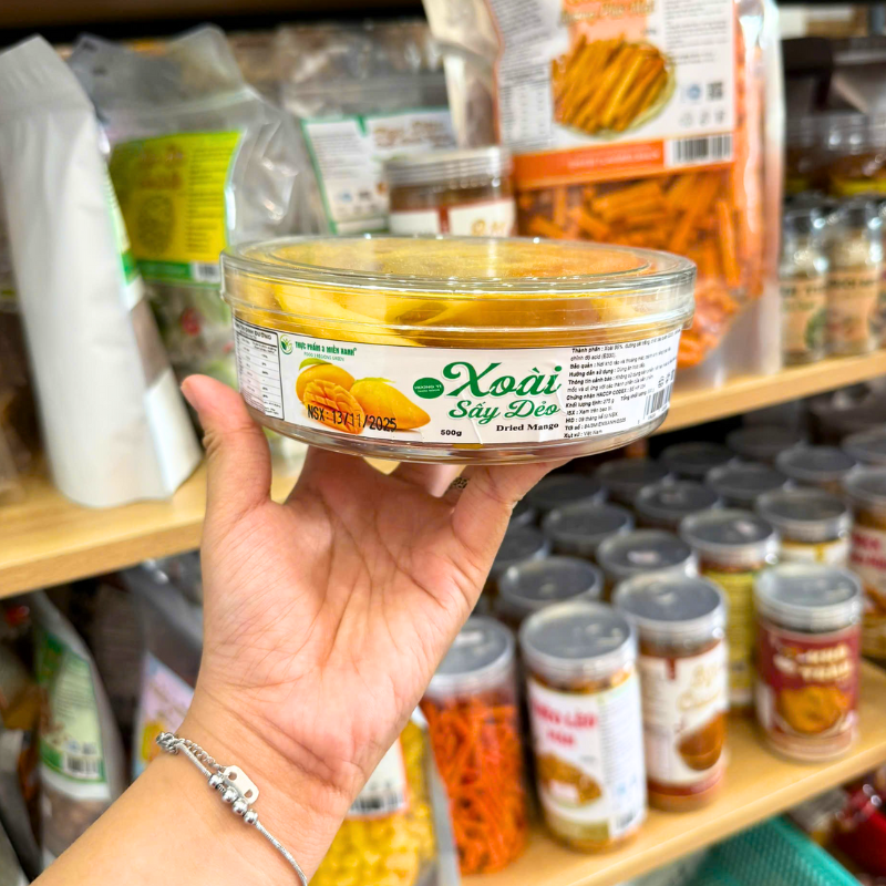 Xoài Sấy Dẻo – Xoài Xếp Hoa Thơm Ngon 500g – Hộp Tròn